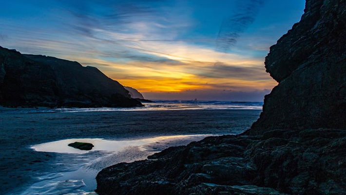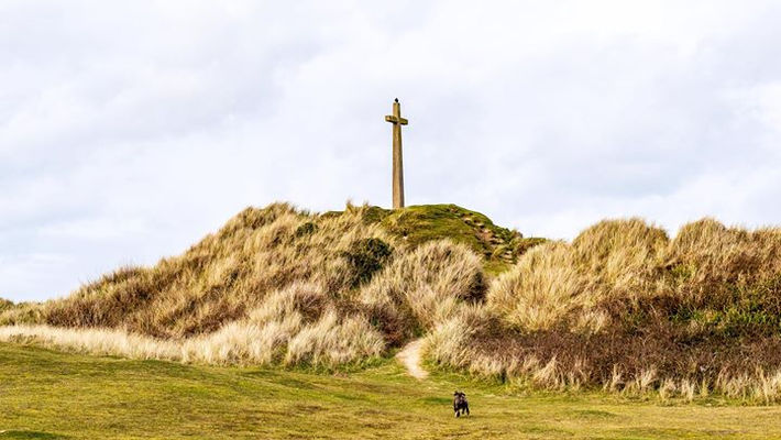 Perranporth is a seaside resort town on the north coast of Cornwall, England, United Kingdom, around 8 miles south-west of Newquay. Perranporth and its 3 miles (5 km) long beach face the Atlantic Ocean and is the largest settlement in the civil parish of Perranzabuloe. The town's modern name comes from Porth Peran, the Cornish for the cove of Saint Piran, the patron saint of Cornwall. He founded St Piran's Oratory on Penhale Sands near Perranporth in the 7th century. Buried under sand for many centuries, it was unearthed in the 19th century.